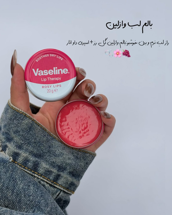 راز لب نرم و بدن خوشبو :بالم وازلین گل رز +اسپری داو انار این بالم کارتون راحت میکنه چون رنگ خیلی نچرالی داره و نیازی نیس رژ یا لیپ گلاس بزنید فقط کافیه قبلش خط لب گوشتی بزنید بعدش بالم ترکیبش میشه لیپگلاس ابرسان قوی لب از بین رفتن پوسته لب حجمش جوریه که ۱ سال براتون میمونه