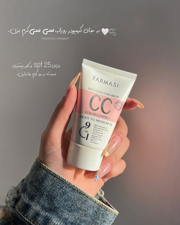 سی سی ccکرم فارماسی,کرمپودر سبک مناسب استفاده روزانه،دارای ۲ طیف رنگی،بافت سبک و فلوئیدی،دارای ضدافتاب،پرایمر،مرطوب کننده