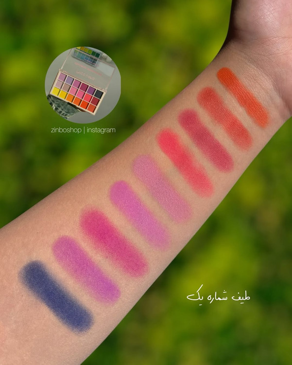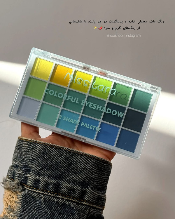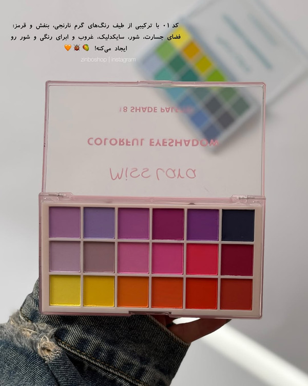 پالت سایه ۱۸ رنگ میس لارا miss lara , دارای ۲ طیف رنگی نارنجی،آبی پرپیگمنت و بدون ریزش