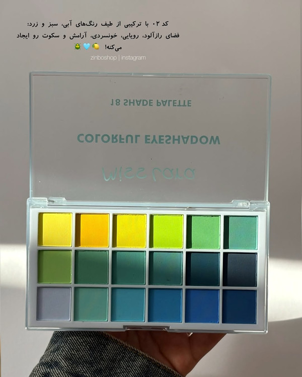 پالت سایه میسلارا کد ۰۱ با ترکیبی از طیف رنگهای گرم نارنجی، بنفش و قرمز: فضای جسارت، شور، سایکدلیک، غروب و ابرای رنگی و شور رو ایجاد میکنه! کد ۰۲ با ترکیبی از طیف رنگهای آبی، سبز و زرد: فضای رازآلود، رویایی، خونسردی، آرامش و سکوت رو ایجاد میکنه! رنگ مات، مخملی، زنده و پرپیگمنت در هر پالت، با طیفهایی از رنگهای گرم و سرد برای وقتایی که خلاقیت و ترکیبهای تازهتر از طبیعت الهامبخش میکاپتون میشن. پالتهای میس لارا یه ابزارن برای ساختن هر حال و هوایی که توی ذهنتون داری. ویژگیهای محصول: Miss Lara گ زیبا و کاربردی کد ۰۱: رنگهای گرم کد ۰۲: رنگهای سرد مات پیگمنت یا رنگدهی بالا ماندگاری طولانی مدت سایزش برای داخل کیف عالیه تاریخ تولید: ۲۰۲۴ تاریخ انقضا: ۲۰۲۹ ثبت فقط از طریق سایت امکانپذیره! . خوش بگذره! . . . . .